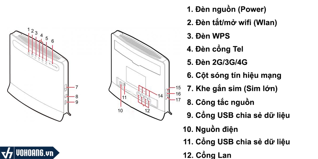 - Có đèn led thông báo như: Đèn Nguồn, Đèn Wifi, Đèn Lan và đèn thông báo trạng thái 3G/4G