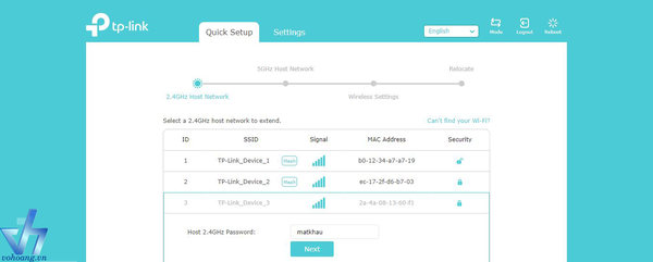 Bước 2: Kết nối với Wifi mặc định của thiết bị là TP-Link Extender để bắt đầu cài đặt thiết bị.