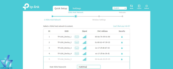 Bước 7: Sau đó chuyển đến lựa chọn wifi ở tần số 5.0Ghz và nhập mật khẩu tương ứng