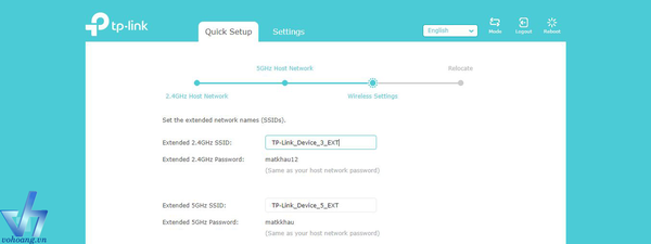 Bước 9: Chọn Confirm và tiếp tục chuyển đến trang thay đổi tên wifi mới tùy ý. Mặc định tên wifi phát ra sẽ giữ nguyên tên gốc và thêm đuôi EXT ở phia cuối. Ta có thể xóa và đặt tùy ý