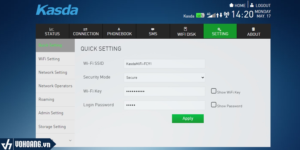 Hướng Dẫn Cài Đặt Bộ Phát WiFi KasDa KW9550 | VoHoang.Vn