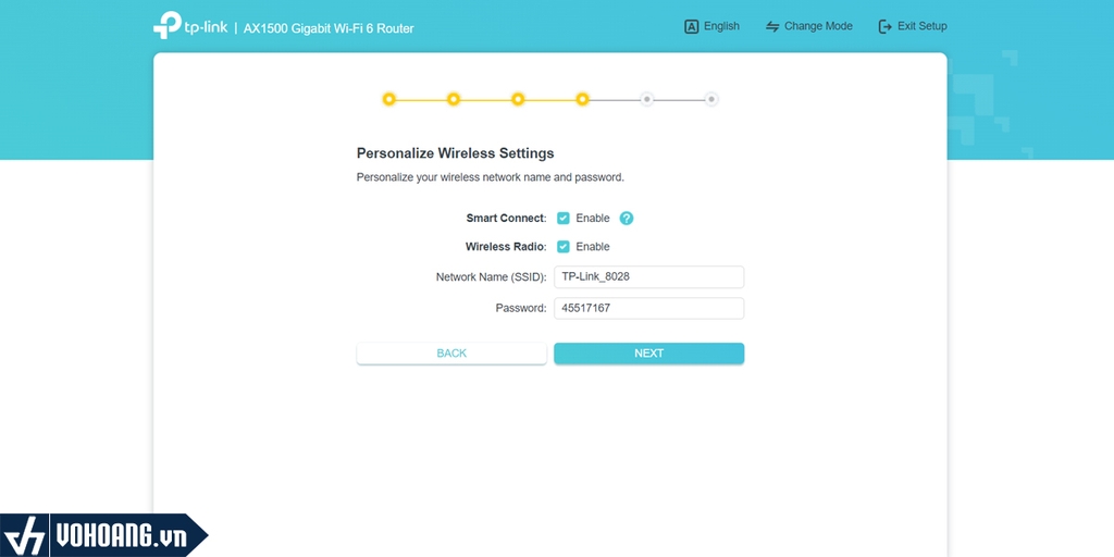 Bước 2: Bỏ qua nhanh những bước cài đặt đầu bằng cách chọn Next, đến phần đặt tên wifi và mật khẩu cho thiết bị
