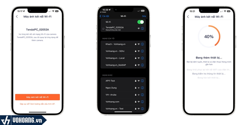 Bước 6: Tiếp theo, bạn hãy chọn "Máy ảnh kết nối Wi-Fi" và bạn sẽ được đưa đến mục cài đặt Wifi trên điện thoại. Bạn hãy kết nối với Wifi camera TendaIPC_XXXXX. Sau đó hãy quay lại ứng dụng để tiến hành thiết lập.