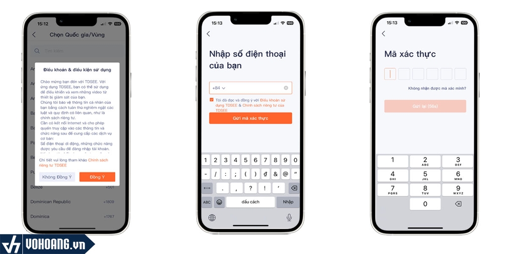Bước 3: Sau khi đã cho phép các quyền truy cập, bạn hãy đồng ý điều khoản và chọn Quốc gia/Vùng của mình. Nếu chưa có tài khoản hãy nhấp chọn đăng ký và điền số điện thoại. Hãy nhập SMS code để hoàn thành đăng ký.