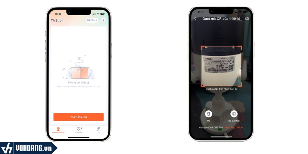 Bước 4: Hãy chọn "Thêm thiết bị" và quét QR được in trên thiết bị.