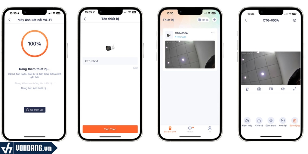 Bước 7: Sau khi thiết lập hoàn tất 100% bạn hãy đặt tên cho camera (ví dụ: Phòng Khách). Bạn có thể bắt đầu xem trực tiếp trên điện thoại của mình rồi !