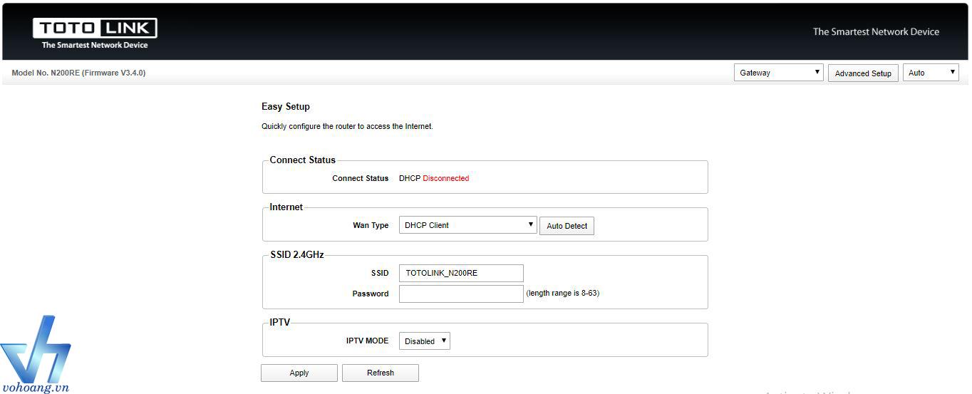 Bước 1: Kết nối với wifi mặc định của thiết bị ( thường được đặt tên là ToToLink N200RE )