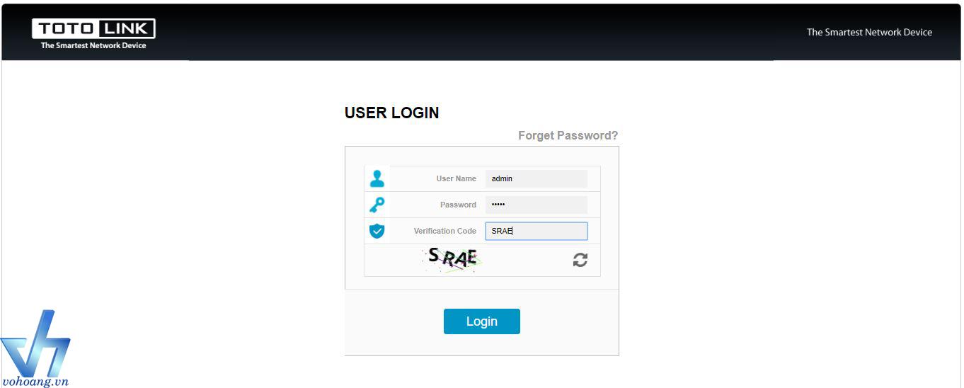 Bước 4: Tại giao diện User Login nhập thông tin đăng nhập mặc định ‘admin’ cho cả 2 ô User Name và Password đồng thời nhập mã xác nhận ở bên dưới vào ô Verification Code sau đó chọn Login