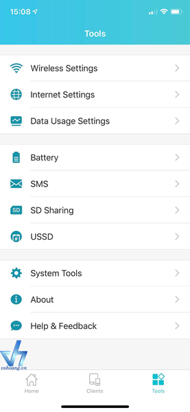 Để thay đổi tên Wifi và Password bạn chuyển sang giao diện Tools nhé