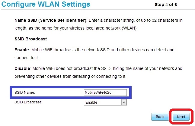 Tại Step 4 of 6, khung SSID, thay tên của mạng wifi mình muốn đặt vào khung, sau đó chọn Next.