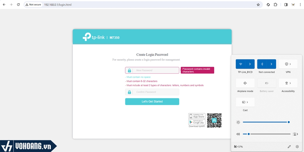 Bước 3: Đặt mật khẩu đăng nhập trang web cài đặt thiết bị M7350 cho những lần tiếp theo (khoảng 6-32 ký tự có ít nhất 2 trong 3 dạng chữ, số, ký tự đặc biệt)