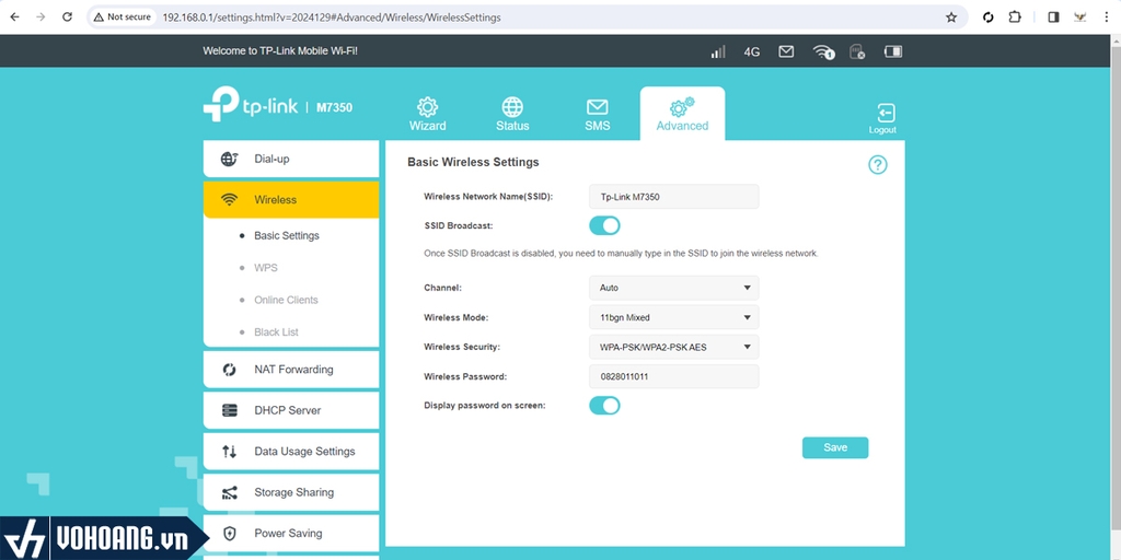 Bước 8: Đăng nhập lại truy cập vào Advanced -> Wireless -> Basic Settings để thay đổi lại thông tin wifi.