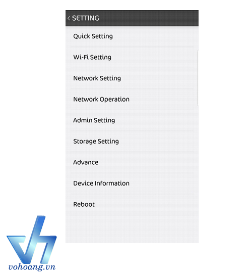 Sau đó bạn chọn mục setting để chuyển đến mục cài đặt -> Setting Wifi