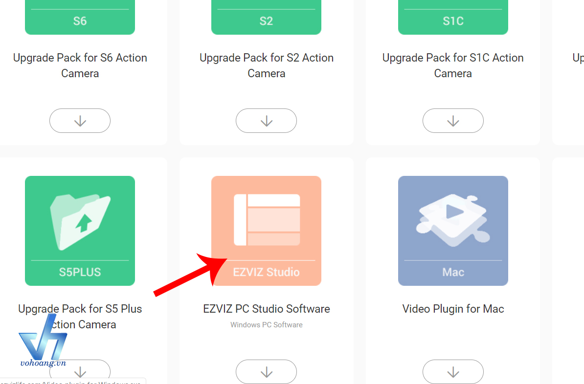 Bước 1 : Truy cập vào https://support.ezvizlife.com/download ,tìm Ezviz Studio và click chuột vào biểu tượng để download phần mềm.