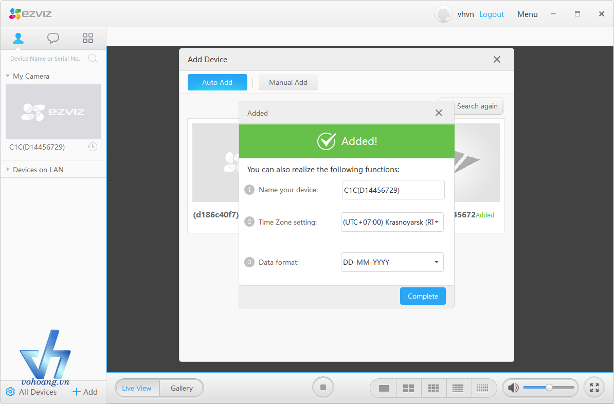 Bước 8 : Thiết lập thành công. Bây giờ bạn có thể tiến hành lắp đặt thiết bị ở vị trí mong muốn và quản lý bằng phần mềm Ezviz trên cả máy tính và thiết bị di động.