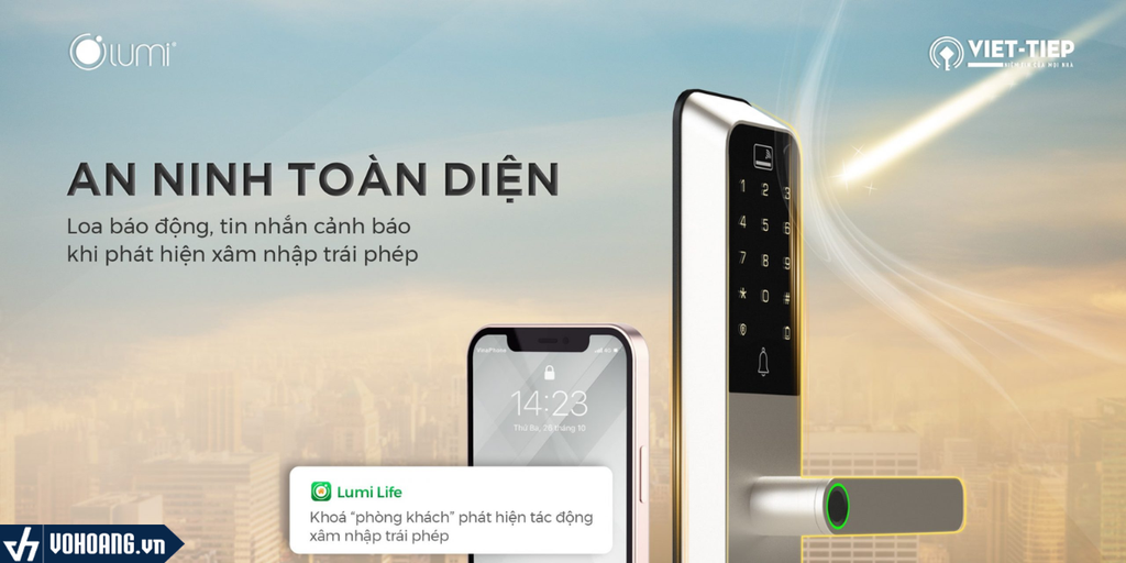 Khi phát hiện tác động cạy khóa, phá khóa, loa trên khóa sẽ phát âm thanh cảnh báo, đồng thời lập tức gửi tin nhắn đến điện thoại chủ nhà. Màn hình tự động khóa, không cho phép thao tác đóng/mở cửa sau 5 lần nhập thẻ/mã PIN sai. Tính kết nối của LUVIT trở nên hữu dụng vượt trội so với các dòng khóa thông thường khi có thể giúp gia chủ cập nhật tình trạng khóa mọi lúc, mọi nơi qua tin nhắn điện thoại và thông báo trên app Lumi Life.