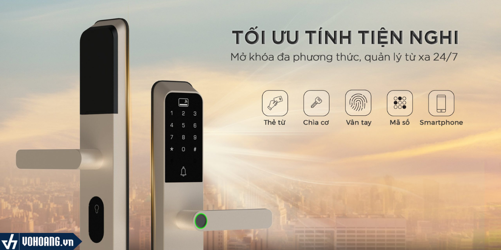 5 chế độ mở khóa đa dạng đem đến lựa chọn tiện dụng với nhiều hoàn cảnh và đối tượng người dùng: mở bằng vân tay – nhận diện trong 1 giây, mở bằng thẻ từ, mở bằng mật khẩu chống nhìn trộm, mở bằng chìa khóa cơ trong trường hợp khẩn cấp và mở bằng ứng dụng trên điện thoại. Cũng trên smartphone của gia chủ, trạng thái đóng/mở khóa được cập nhật thông báo theo thời gian thực, giúp việc kiểm soát an ninh trở nên dễ dàng hơn bao giờ hết chỉ với một cái chạm tay.