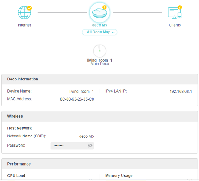 Deco và máy khách trên trang quản lý web và có một số cài đặt nâng cao trên trang quản lý web.
