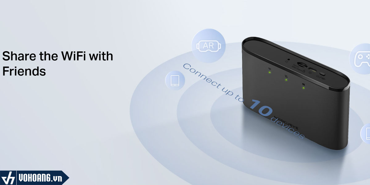 Một trong những đặc điểm nổi bật của MT110 là khả năng chia sẻ kết nối internet cho đến 10 thiết bị cùng một lúc, làm cho nó trở thành một điểm phát sóng WiFi di động lý tưởng cho nhóm người dùng hoặc gia đình.