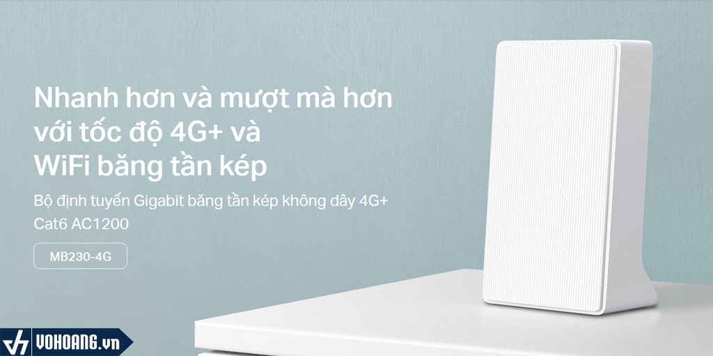 Hoạt động như một bộ định tuyến WiFi 4G+, MB230-4G sử dụng công nghệ 4G+ Cat6 cho tốc độ tải xuống siêu nhanh lên đến 300 Mbps và tải lên 50 Mbps. Thiết bị cũng có thể chia sẻ tốc độ mạng WiFi băng tần kép lên đến 1,2 Gbps. Băng tần 2,4 GHz hoàn hảo cho việc phát nhạc trực tuyến và mua sắm trực tuyến, trong khi băng tần 5 GHz, với tốc độ 867 Mbps, xử lý việc phát trực tuyến HD và chơi game đòi hỏi băng thông lớn.