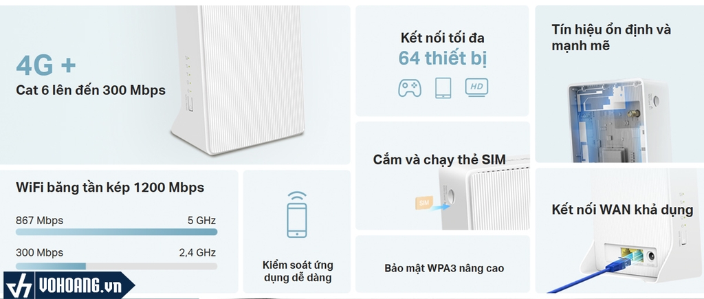 Tốc độ 4G+ Cat6 cực nhanh cho WiFi đáng tin cậy