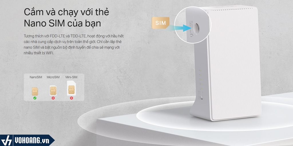 Tương thích với FDD-LTE và TDD-LTE, hoạt động với hầu hết các nhà cung cấp dịch vụ trên toàn thế giới. Chỉ cần lắp thẻ nano SIM và bật nguồn bộ định tuyến để chia sẻ mạng với nhiều thiết bị WiFi.