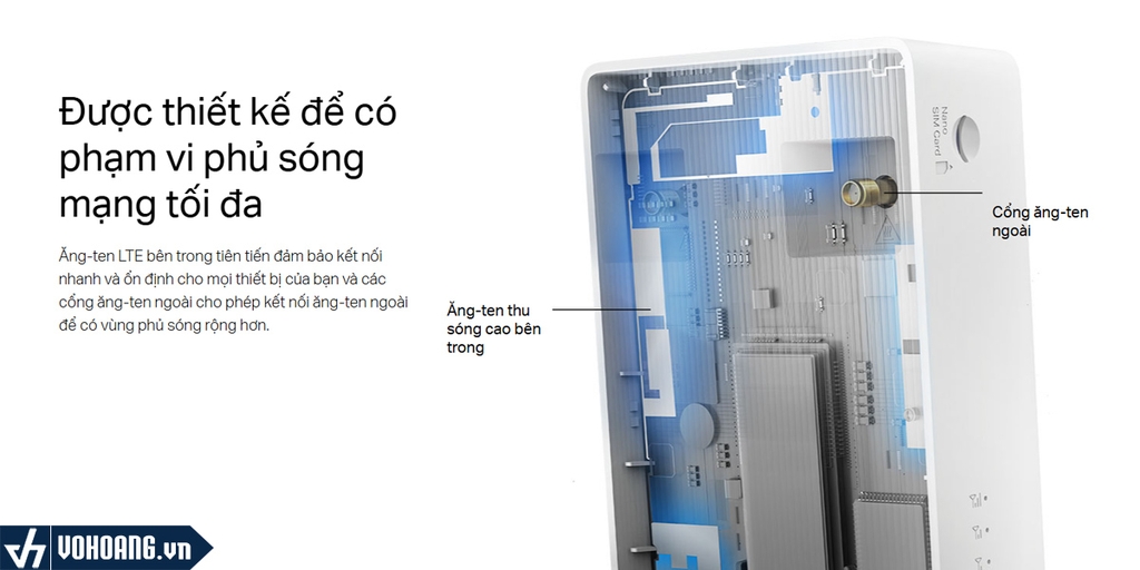Ăng-ten LTE bên trong tiên tiến đảm bảo kết nối nhanh và ổn định cho mọi thiết bị của bạn và các cổng ăng-ten ngoài cho phép kết nối ăng-ten ngoài để có vùng phủ sóng rộng hơn.