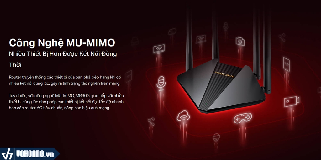 Tuy nhiên, với công nghệ MU-MIMO, MR30G giao tiếp với nhiều thiết bị cùng lúc cho phép các thiết bị kết nối đạt tốc độ nhanh hơn các router AC tiêu chuẩn, nâng cao hiệu quả mạng.