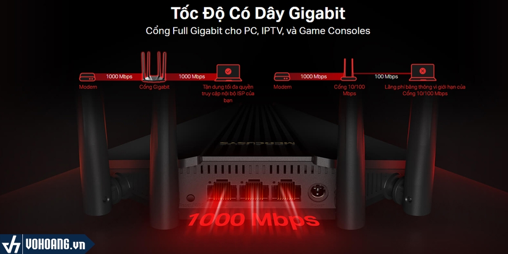 | Cổng mạng | 1 cổng WAN Gigabit + 2 cổng LAN Gigabit |