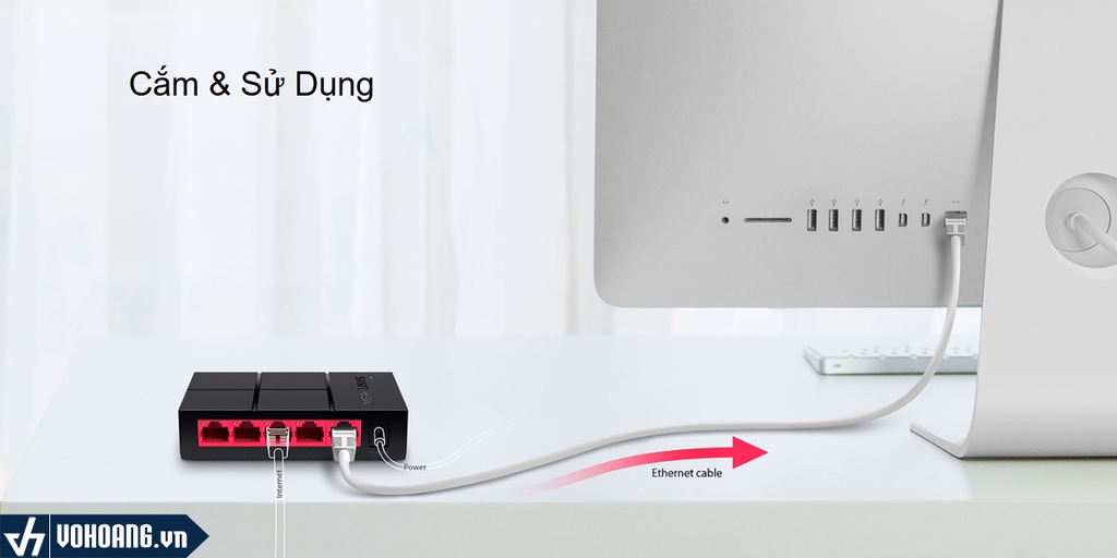 Không cần cài đặt phức tạp. Chỉ cần kết nối Switch với TV hoặc máy tính của bạn qua cáp Ethernet để mở rộng mạng có dây ngay lập tức. Hoàn toàn không cần cấu hình.