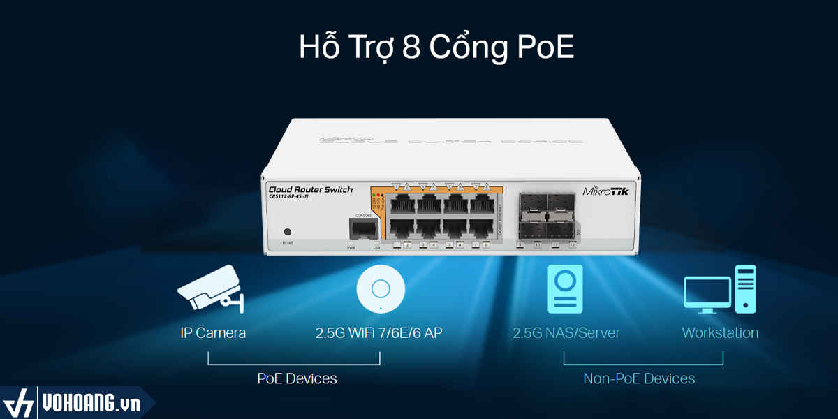 Hỗ Trợ 8 Cổng PoE Chuyên Dụng
