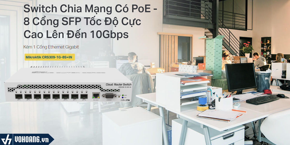 Mikrotik CRS309-1G-8S+IN là một thiết bị chuyển mạch để bàn với một cổng Ethernet Gigabit và tám cổng SFP+ 10Gbps, hỗ trợ mô-đun lên đến 10 Gbit cho mỗi khe cắm, mang lại tổng công suất chuyển mạch lên đến 162 Gbps và tổng thông lượng không bị chặn là 81 Gbps.