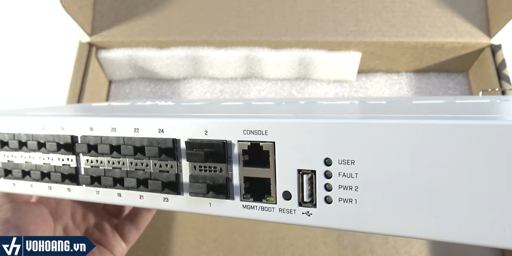 Cổng kết nối | 24x Cổng SFP+ 2x Cổng QSFP+ 1x USB A |