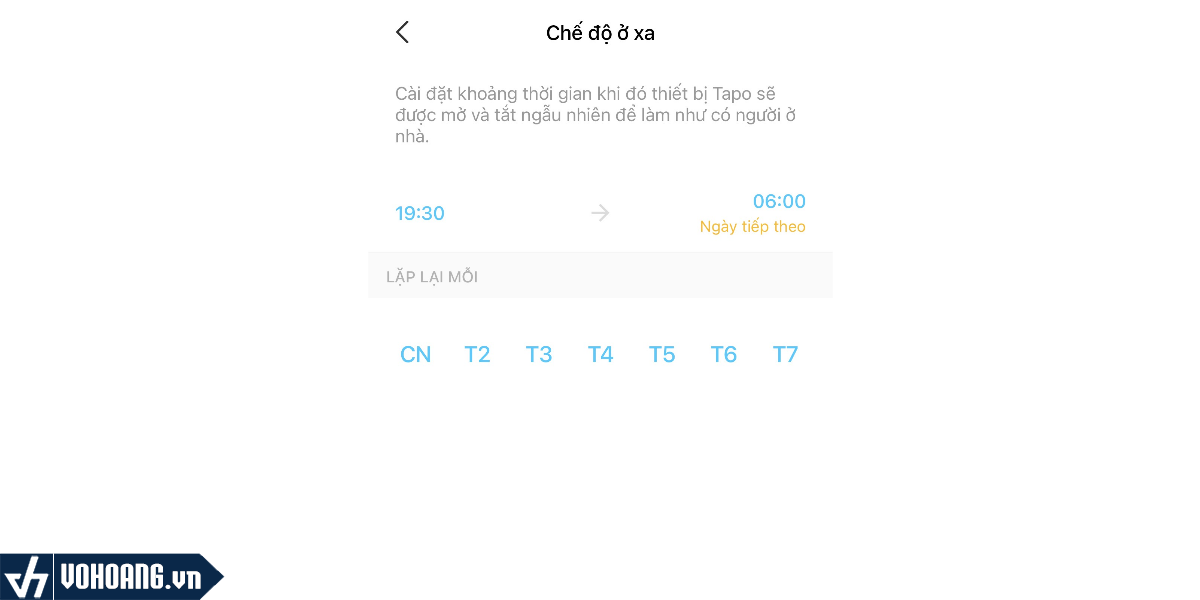 Cài đặt khoảng thời gian mà khi đó Thiết bị Tapo sẽ tư động bật lên và tắt ngẫu nhiên như có người ở nhà.