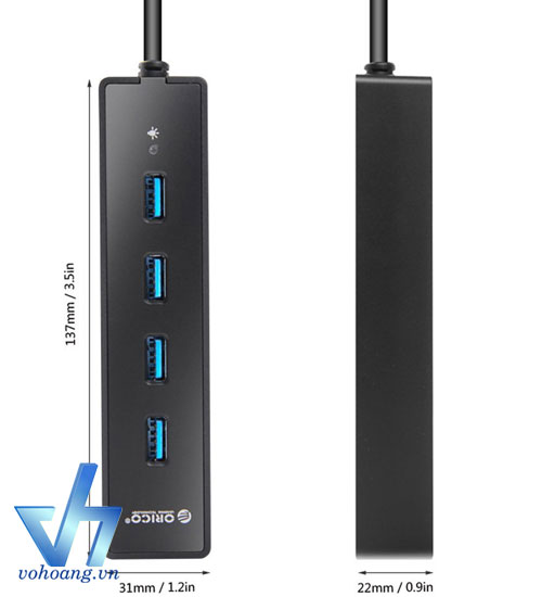 Laptop, máy tính của ban thiếu cổng USB? Bạn có nhu cầu sử dụng nhiều thiết bị USB cùng một lúc? Đó chính là lúc bạn cần một Orico W8PH4 USB 3.0 Hub. Thiết bị này cung cấp cho bạn bốn cổng USB 3.0, thiết bị nhỏ gọn tinh tế. Với USB 3.0 hub mang đến tốc độ nhanh như chớp, nhanh hơn USB 2.0 10 lần. Bạn cũng có thể tránh được những rắc rối của việc rút ra hoặc cắm thiết bị USB của bạn vào máy tính, bởi vì nó có đến 4 cổng USB 3.0 ngay bên cạnh bạn. Hoàn toàn Plug & Play, không cần cài Driver và tương thích với tất cả hệ điều hành Windows XP, Vista, 7, 8; Mac OS 9.1 hoặc mới hơn. Bên cạnh hiệu suất tuyệt vời, nó cũng có một thiết kế thời trang và thiết thực, thiết kế rất vừa với lòng bàn tay, với những cổng USB được thiết kế nằm dọc giúp bạn có thể thao tác rất dễ dàng và nó cũng rất thích hợp để làm vật trang trí trên bàn làm việc của bạn. Dễ sử dụng và phù hợp với túi tiền của bạn.