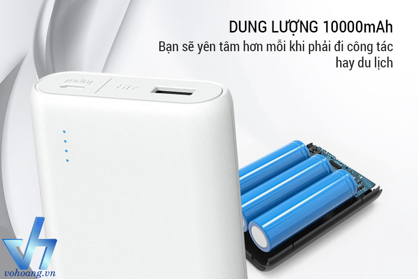 Với dung lượng 10000mAh, sản phẩm sẽ nhanh chóng cung cấp năng lượng cho các thiết bị di động của bạn bất cứ khi nào và bất cứ nơi đâu. Bạn sẽ yên tâm hơn mỗi khi phải đi công tác hay du lịch.