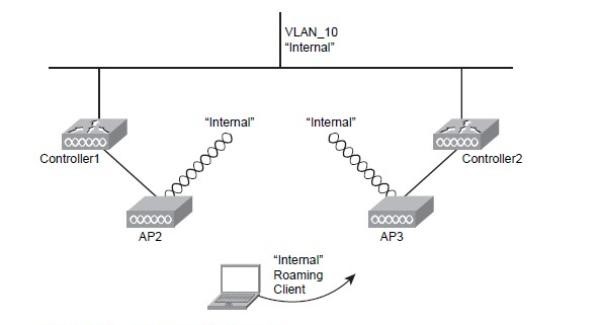 Giả sử có một bộ điều khiển khác cũng có tình huống tương tự, client sẻ kết nối với bộ điều khiển 1 trong VLAN10. Khi chuyển vùng đến AP 3 do bộ điều khiển 2 quản lý, kết nối vẫn được duy trì.