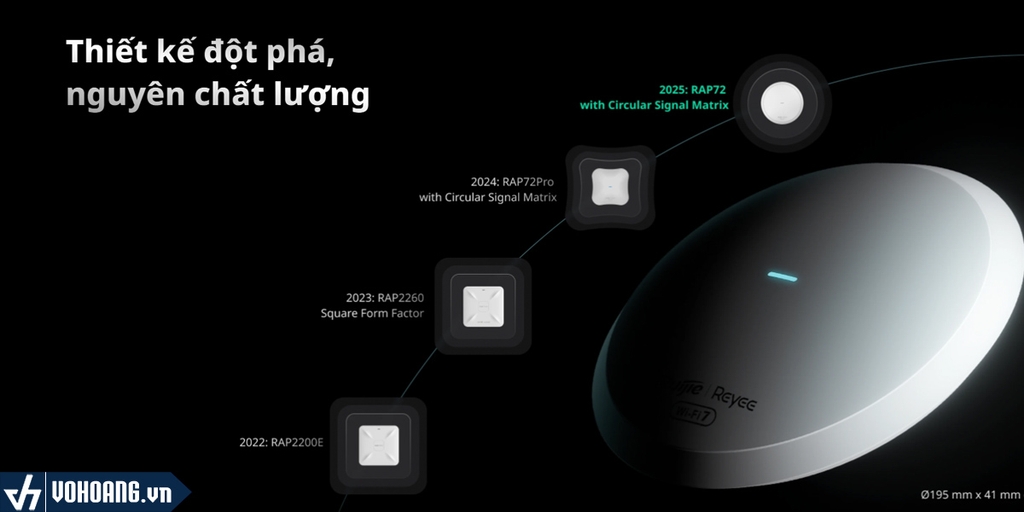 Reyee RG-RAP72 là phiên bản tinh gọn của RG-RAP72Pro, sở hữu kích thước chỉ Ø195 mm x 41 mm với thiết kế ốp trần giúp nâng tầm vẻ sang trọng cho không gian của bạn.