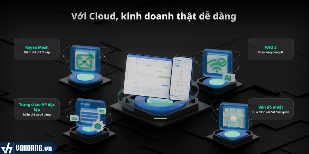 Quản trị cloud dễ dàng: Mở rộng tính năng với Reyee Mesh, Marketting WiFi, Tối ưu hóa với AI (WIO 3.0), bản đồ nhiệt
