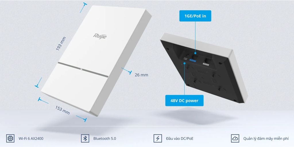 Ruijie RG-AP820-L(V2) - bản nâng cấp từ phiên bản RG-AP810 đáp ứng nhu cầu băng thông rộng hơn, kết nối nhiều hơn cho 1 điểm truy cập wifi. Được thiết kế cho nhu cầu wifi mật độ cao RG-AP820-L(V2) tinh gọn cổng kết nối chỉ còn sở hữu 1 cổng cấp mạng gigabit duy nhất tích hợp cấp nguồn PoE giúp giảm thiểu chi phí giá thành sản phẩm.