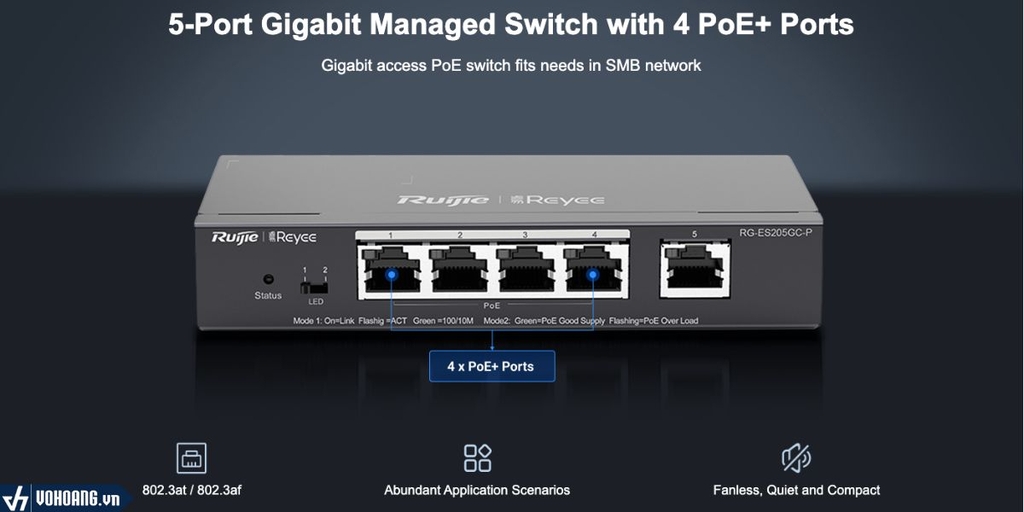 – Layer 2 Smart Managed PoE Switch 5 Cổng 10/100/1000BASE-T công suất 54W