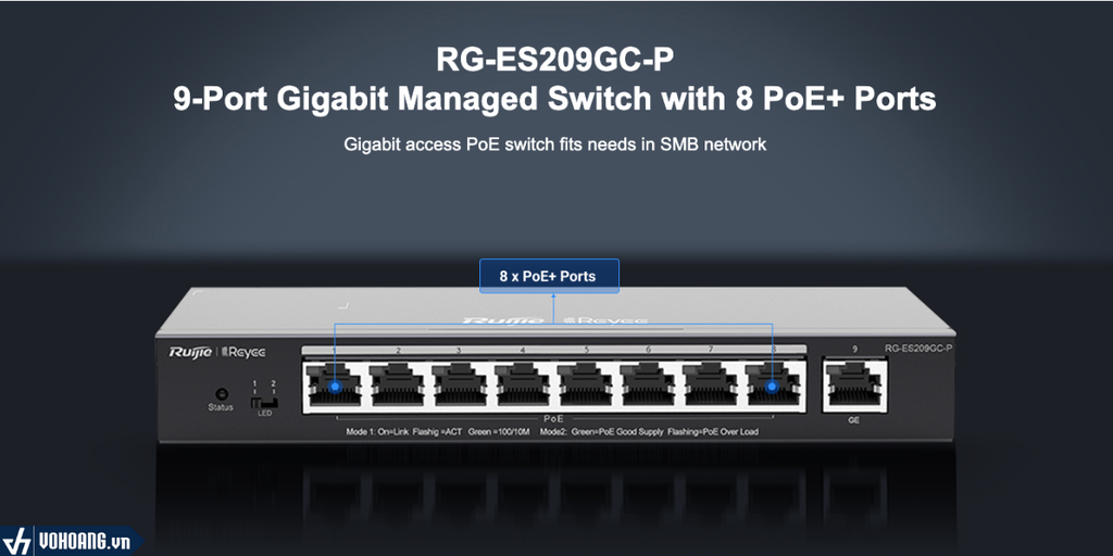 – Layer 2 Smart Managed PoE Switch 9 Cổng 10/100/1000BASE-T công suất 120W