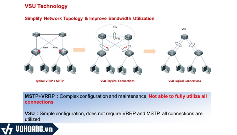 Công nghệ Virtual Switch Unit, hay nói ngắn gọn là VSU, cho phép một số thiết bị vật lý kết nối với nhau bằng cách ảo hóa chúng thành một thiết bị logic. Thiết bị logic sử dụng một địa chỉ IP duy nhất, quy trình Telnet, giao diện dòng lệnh (CLI) và cho phép cấu hình và kiểm tra phiên bản tự động. Từ góc độ người dùng, lợi ích được nhân lên hiệu quả công việc và nâng cao trải nghiệm người dùng của một số thiết bị hoạt động cùng lúc. Và họ chỉ phải quản lý một thiết bị.