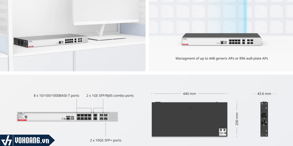 Bộ điều khiển truy cập (AC) RG-WS6012-L được thiết kế cho các mạng quy mô vừa và nhỏ, cung cấp khả năng chuyển tiếp 10 Gbps. Thiết bị có khả năng mở rộng cao, cho phép cấu hình và quản lý điểm truy cập (AP) linh hoạt.