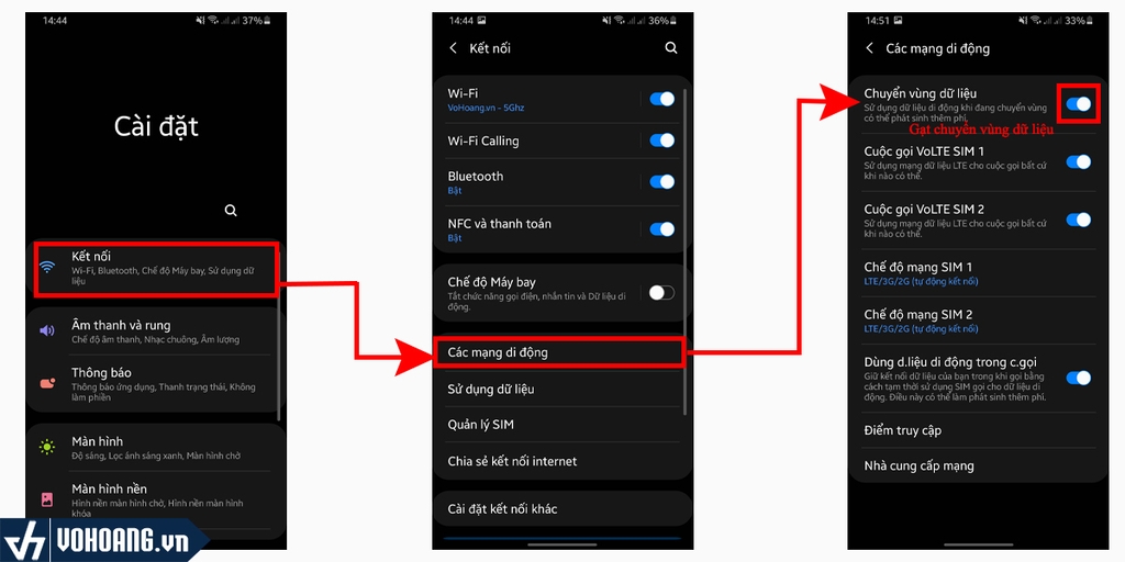 Lưu ý: Luôn để mở chế độ " Chuyển vùng dữ liệu " Data roaming" tại Châu Âu để có thể sử dụng internet liên tục tại các nước châu Âu.