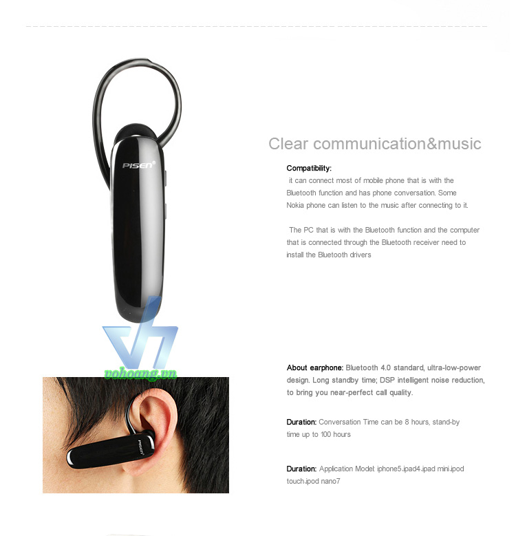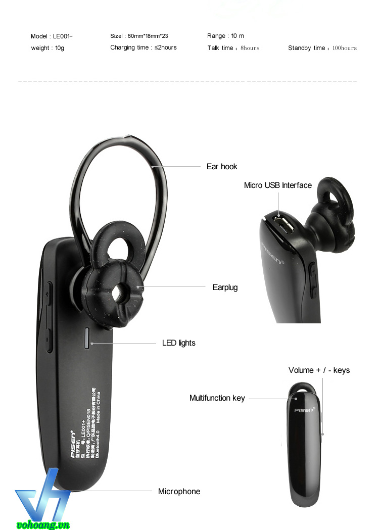 Pisen LE001+ là dòng tai nghe Bluetooth mới nhất của Pisen sử dụng Bluetooth 4.0 kết hợp công nghệ âm thanh 3D, nâng cao tốc độ phạm vi hoạt động và tiết kiệm năng lượng so với chuẩn bluetooth đời cũ. Công nghệ giảm ồn A2DP cho phép bạn nắm bắt cuộc gọi trong môi trường có tạp âm lớn, kèm theo đó viên pin được Pisen cải tiến cho phép đàm thoại liên tục 8h và thời gian chờ là 100h. Sản phẩm tương thích với 90% thiết bị có trên thị trường.