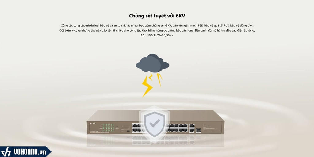 Công tắc cung cấp nhiều loại bảo vệ và an toàn khác nhau, bao gồm chống sét 6 KV, bảo vệ ngắn mạch PSE, bảo vệ quá tải PoE, bảo vệ dòng điện đột biến, v.v., và những thứ này bảo vệ rất nhiều cho công tắc khỏi bị hư hỏng do giông bão cảm ứng. Bên cạnh đó, nó hỗ trợ đầu vào điện áp rộng, AC:100-240V~50/60Hz.