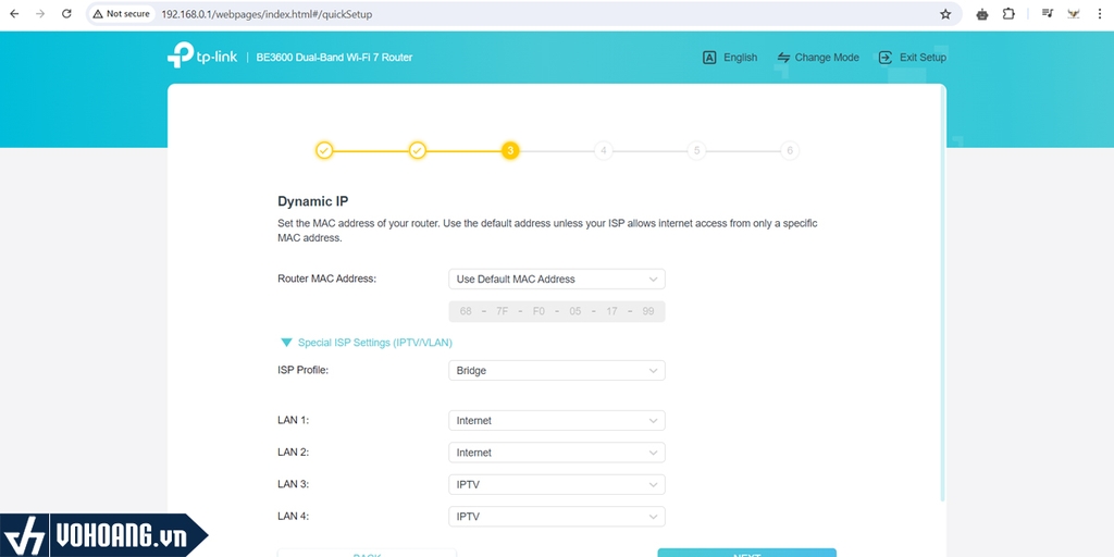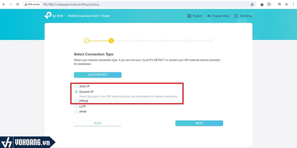 Bước 3: Chọn loại kết nối internet cổng WAN đầu vào cho TP-LINK Archer BE320