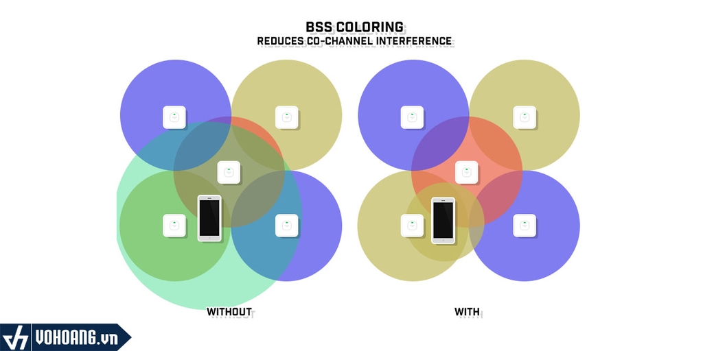 Ngoài ra, Wi-Fi 6 cũng cung cấp độ phủ sóng tốt hơn và khả năng xuyên tường tốt hơn. Công nghệ BSS Coloring (Bi-Directional Stream State Coloring) giúp giảm nhiễu sóng và tăng cường hiệu suất truyền dẫn trong môi trường mạng đông người dùng.
