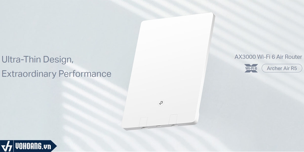 Tp-Link Archer Air R5 có kích thước nhỏ gọn 210×148×10,8mm, lớp vỏ màu trắng sang trọng, các đường nét tối giản và các góc bo tròn tạo thành một diện mạo thanh lịch và giúp Archer Air R5 tích hợp tốt hơn với nội thất gia đình hiện đại.
